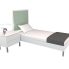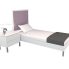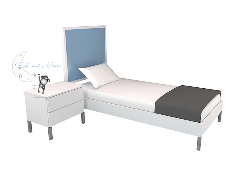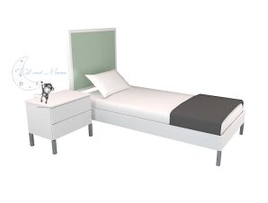 Bed and sidetable on anodized aluminium legs 2 drawer bedside table Any fabric can be chosen for the wall mounted headboard