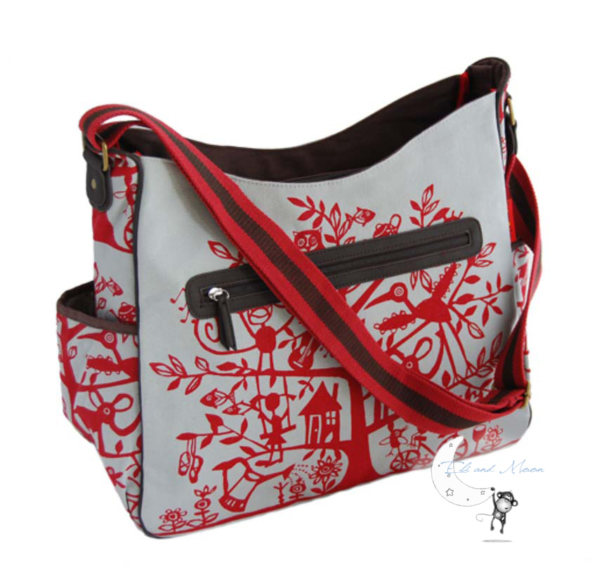 Cross body strap to free up your hands and to hang on pram. Changing mat.